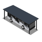 Extra wide 13' covered parking, suitable for RVs, boats, etc up to 32' long. High clearance roof and a cement pad to protect from the elements. Space does require backing into.